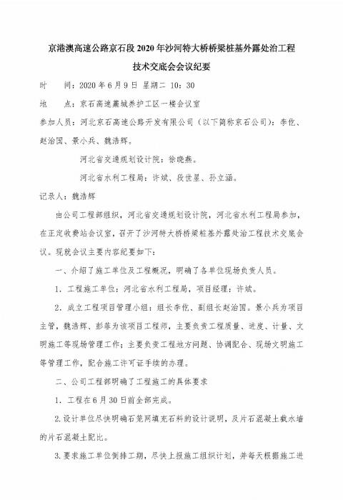 京港澳高速公路京石段2020年沙河特大橋橋梁樁基外露處治工程項目管理小組