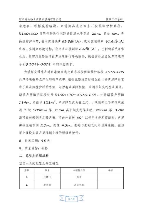 K130+600 處聲 屏障增設(shè)工程監(jiān)理報(bào)告