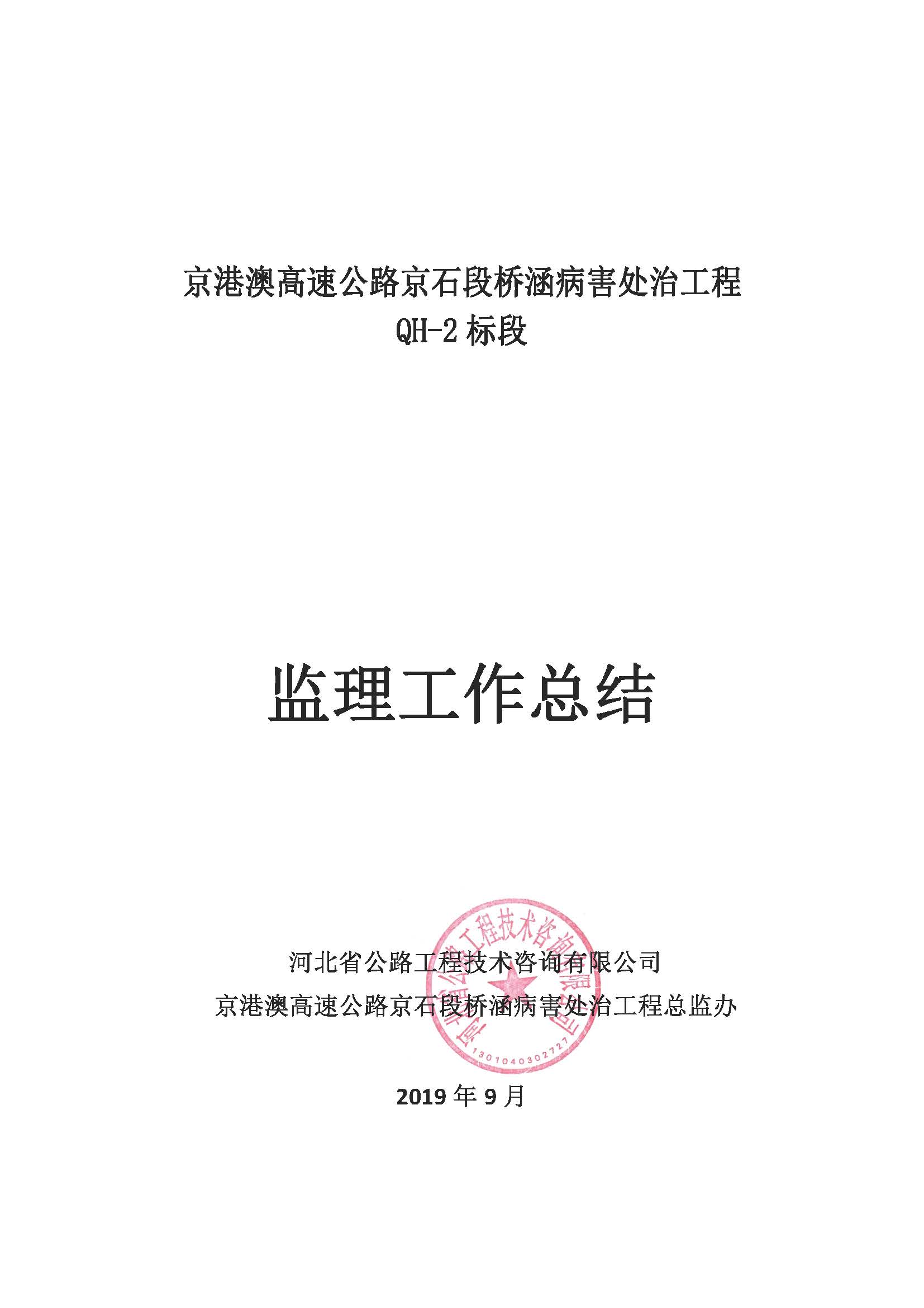 橋涵病害處治工程QH-2標(biāo)監(jiān)理報告