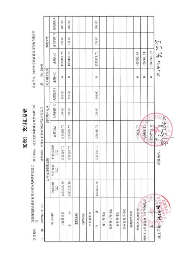 沙河特大橋樁基防護應(yīng)急工程支付證書
