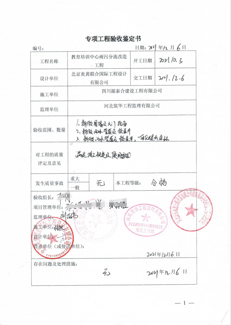 河北京石高速公路開(kāi)發(fā)有限公司教育培訓(xùn)中心雨污分流改造工程竣工驗(yàn)收