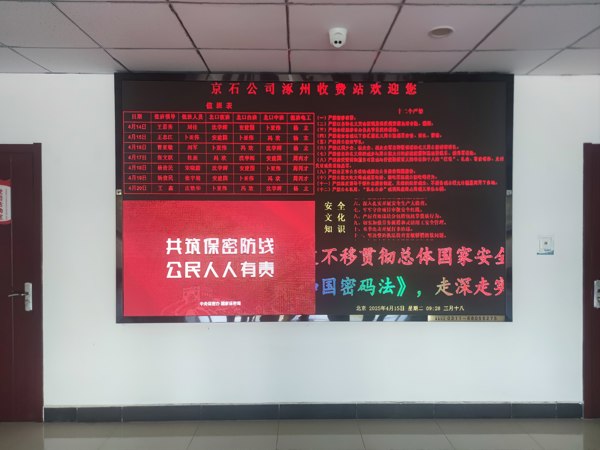 二是加強(qiáng)線下宣傳展示,提升公眾直觀認(rèn)知。涿州站在辦公區(qū)、收費(fèi)站張貼2張主題海報(bào),利用電子顯示屏滾動播放保密公益宣傳片及國家安全宣傳口號,從早到晚不間斷。過往人員能直觀了解國家安全的重要性,有效擴(kuò)大了宣傳覆蓋面與影響力。