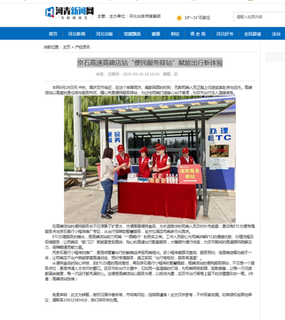 【河青新聞網(wǎng)】京石高速高碑店站“便民服務(wù)驛站”賦能出行新體驗