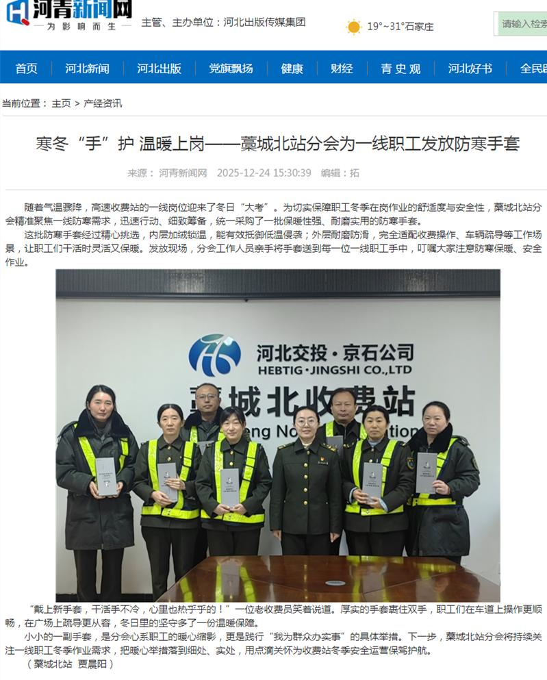 【河青新聞網(wǎng)】寒冬“手”護(hù) 溫暖上崗——藁城北站分會為一線職工發(fā)放防寒手套