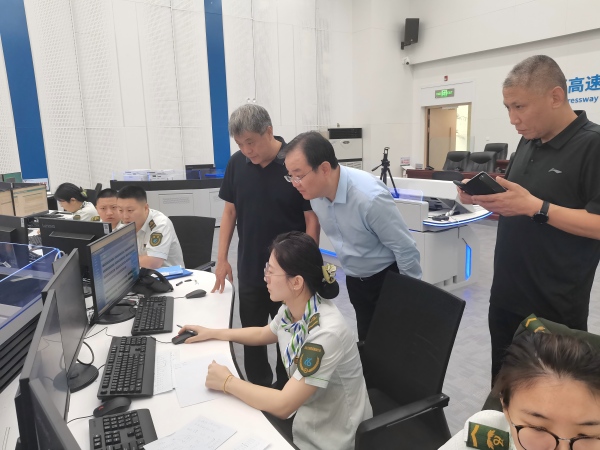 李昕通過外場視頻巡查了全線通行狀況及易緩行路段車流量數(shù)據(jù),詳細(xì)詢問了養(yǎng)護工區(qū)、救援公司等單位的點位值守和特情應(yīng)對準(zhǔn)備情況,并就一起側(cè)翻事故和一起車輛自燃事故的處置過程進行了現(xiàn)場調(diào)度,實地檢驗了多方協(xié)作應(yīng)急效率。