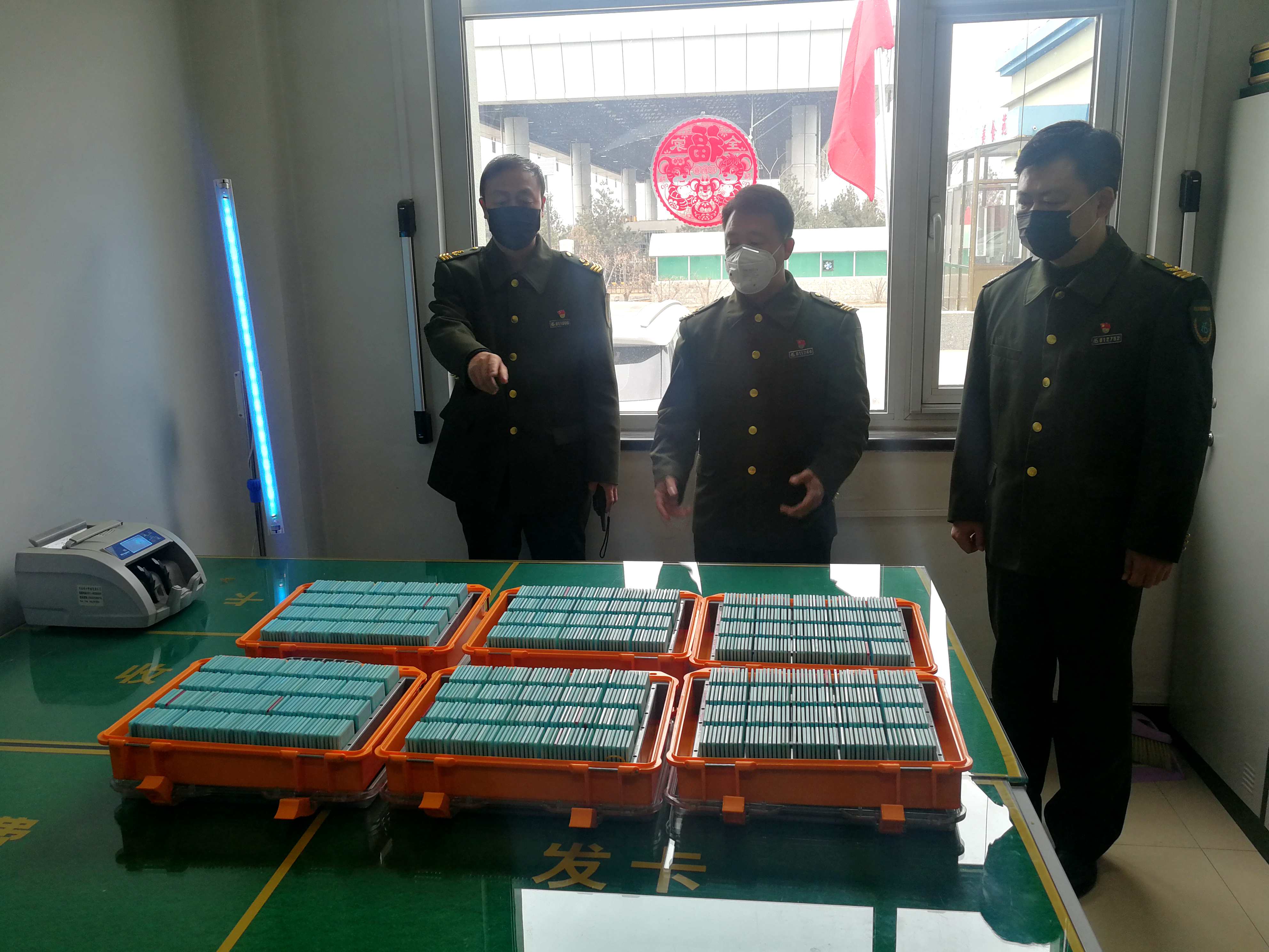 后勤保障工作全面到位。為打贏這場疫情防控阻擊戰(zhàn),緩解同志們工作上的壓力,減輕他們的勞動強(qiáng)度,支部一班人還提出了“三個帶頭”:領(lǐng)導(dǎo)帶頭做好收費崗位替崗工作,黨員帶頭分擔(dān)綠通檢驗工作,退轉(zhuǎn)軍人帶頭分擔(dān)保障工作??紤]到一些老同志身體素質(zhì)等因素,從春節(jié)假期到現(xiàn)在仍采取四班三運轉(zhuǎn)的倒班方式,每個班組上崗前,值班人員電話提醒身體不好的同志備足藥品,如發(fā)現(xiàn)特殊情況不能上崗的,備勤人員立即補位。針對各項防疫物資登記造冊,建立《防疫物資臺賬》、《防疫物資盤點表》、《防疫物資入庫登記表》、《防疫物資領(lǐng)用登記表》等,確保時時掌握物資使用情況。