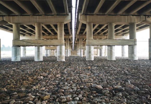 5月6日,公司養(yǎng)護(hù)人員巡查發(fā)現(xiàn),京港澳高速(G4)沙河特大橋北京方向、石家莊方向第14~17#共40根墩柱沖刷嚴(yán)重,樁基裸露,最高裸露高度為3.6m。