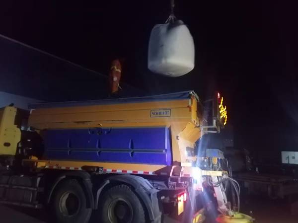 11月26日夜,京石高速涿州以北路段突發(fā)降雪,定興工區(qū)以雪為令,快速反應(yīng),人員旋即到位,啟動預(yù)熱融雪劑撒布車,迅速裝載融雪劑,對降雪路段撒布融雪劑至冀京界,兼顧互通,做到無死角撒布,確保轄段安全暢通。