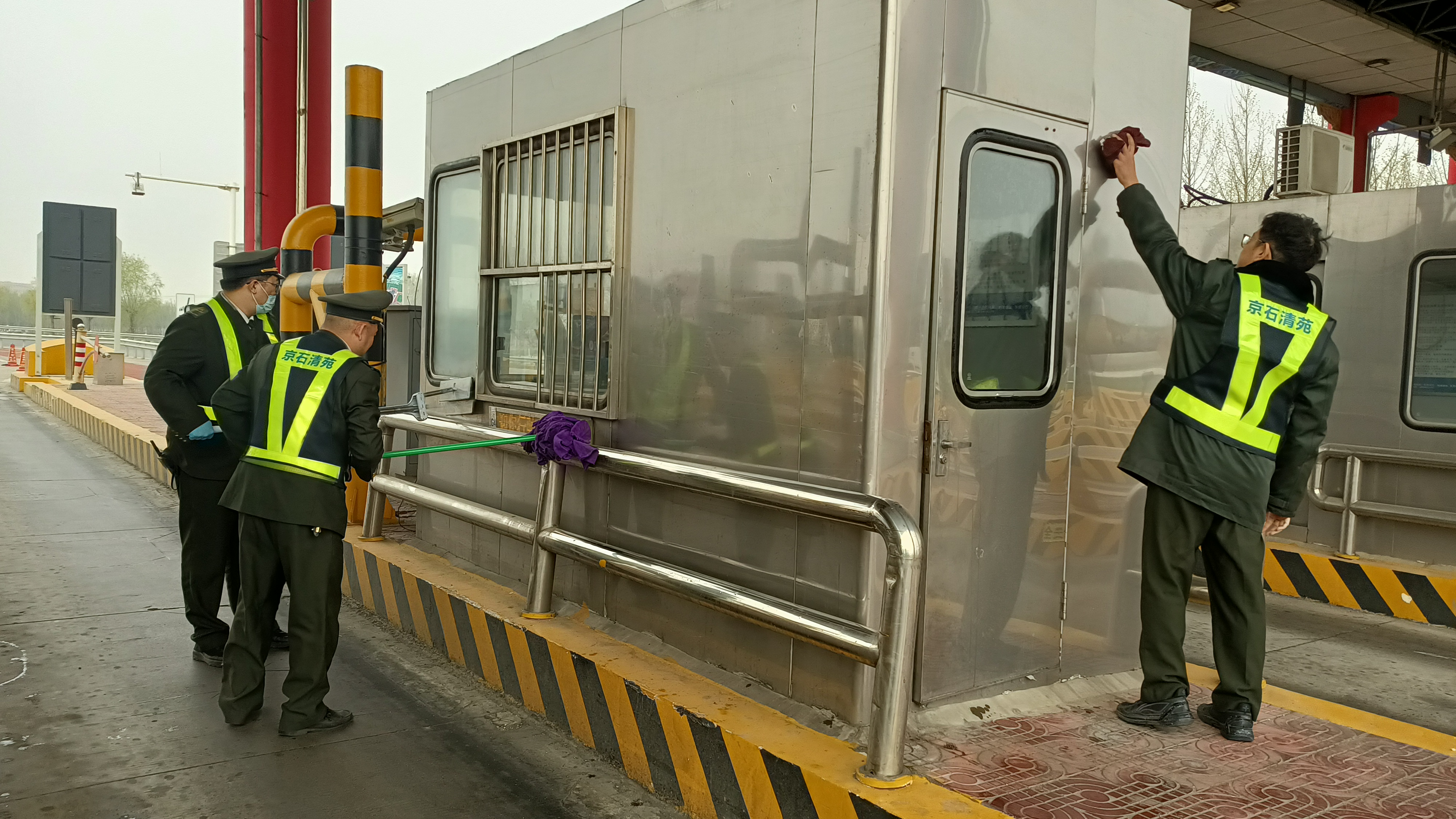 狂風(fēng)過后,清苑站班組人員第一時間積極主動快速響應(yīng),投身到緊張的環(huán)境清潔與設(shè)備安全檢查工作中。班組人員分工明確配合默契,拿起清潔工具,仔細清掃地面上被狂風(fēng)卷起的雜物和塵土,擦拭玻璃窗口上的浮塵、收費亭的門窗、欄桿等設(shè)施,有序固定擺放好站口的疏導(dǎo)設(shè)施,讓站口環(huán)境重新煥發(fā)整潔有序。同時對邊坡溝渠、以及兩側(cè)綠化帶等區(qū)域受狂風(fēng)影響所帶來的斷落枯枝、垃圾雜物也進行徹底清理,不放過任何一個衛(wèi)生死角。