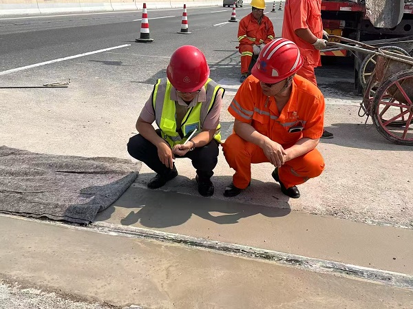 質(zhì)量監(jiān)督全流程。以“工序驗(yàn)收零缺陷”為目標(biāo),建立“班組自檢+質(zhì)檢專檢+監(jiān)理終檢”三檢制,嚴(yán)抓伸縮裝置材料檢驗(yàn)、施工工藝規(guī)范;全量驗(yàn)收伸縮縫寬度、平整度等參數(shù),合格率達(dá)100%,實(shí)現(xiàn)質(zhì)量管控?zé)o死角。
