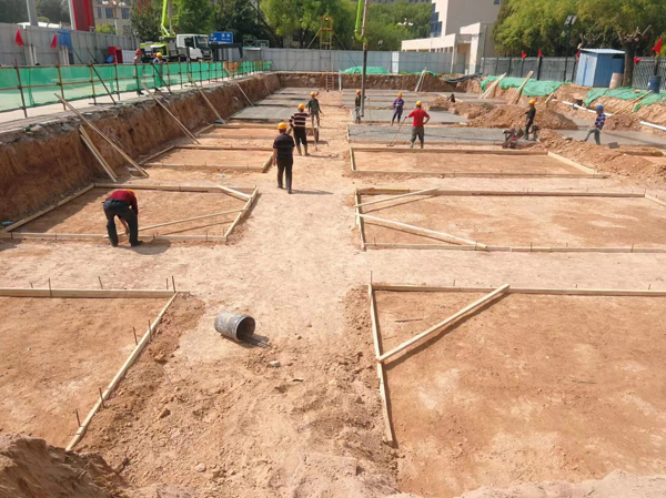 施工單位隨即進(jìn)行下一步施工,支模、放線、驗線,目前,利用天氣晴好的黃金施工窗口,正抓緊澆筑墊層混凝土。