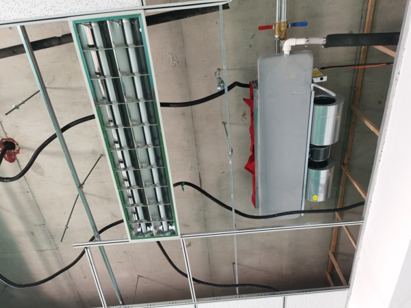 9月28日,工程進入了一個新的階段,宿辦樓一層房頂、740米管道、39臺風機盤管以及5臺室外多聯(lián)機空調設備已全部拆除。室內機的安裝工作也隨之展開。這一階段的順利完成,為項目的下一階段施工提供了良好的保障,并為后續(xù)建設打下了堅實的基礎。
