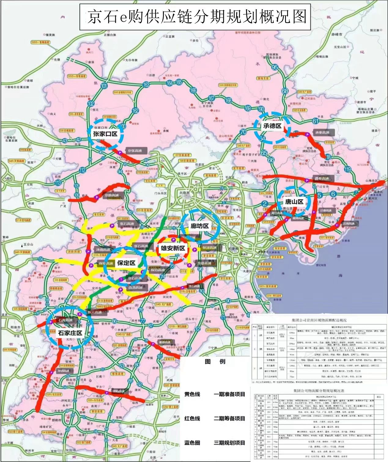 《京石e購項目三年發(fā)展方案》明確了項目配送發(fā)展布局,按不同區(qū)域、不同商品采購需求分三期建設(shè)推進(jìn)。一期物流供應(yīng)鏈服務(wù)范圍包括以集團(tuán)公司所屬北京南部、石家莊以北區(qū)域高速路段或其他企事業(yè)單位,以首衡河北新發(fā)地中心,配送距離在300公里范圍之內(nèi),保障5000名員工單位和食堂供應(yīng)。同步開展零售端的員工會員,以居家生活為需求的農(nóng)副產(chǎn)品、快消品購買業(yè)務(wù)。以路段公司或簽約采購單位食堂為單位,在各高速沿線建立員工會員配送站點,結(jié)合食堂商品同步配送,節(jié)約快遞成本,完成員工會員商品的接收、保管與交付。二期物流供應(yīng)鏈服務(wù)范圍將聯(lián)手集團(tuán)物流企業(yè)在唐山、張家口、邢臺建立三個分撥轉(zhuǎn)運節(jié)點,保障集團(tuán)公司全域路內(nèi)單位及雄安地區(qū)機關(guān)單位、企業(yè)、學(xué)校等食堂的配送供應(yīng),增加服務(wù)采購端6000名員工單位和食堂食品供應(yīng)。實現(xiàn)在高速沿線收費站或服務(wù)區(qū)建立兌換站點(米、面、油或特色食品),客戶能夠用冀交萬里行的積分兌換商品,實現(xiàn)對會員的承諾,鼓勵引車上路和各類消費,形成會員發(fā)展與增加通行費收入的閉環(huán)流轉(zhuǎn)。三期物流供應(yīng)鏈服務(wù)范圍將在形成省內(nèi)集團(tuán)產(chǎn)品物流配送鏈條的基礎(chǔ)上,建立以雄安新區(qū)、石家莊、唐山、廊坊、衡水等大中型城市為重點的城市綠色配送鏈,建立城市配送轉(zhuǎn)運節(jié)點,全面服務(wù)于社會團(tuán)體和個人客戶。