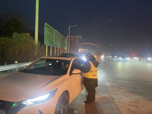 在收費(fèi)廣場上,工作人員身著反光背心的工作人員冒著凜冽寒風(fēng),有序引導(dǎo)待行車輛,有效防止道路擁堵。“師傅,前方霧大,能見度低,請一定保持車距、打開霧燈!”一句句貼心叮囑,緩解了司乘人員心中的焦慮。