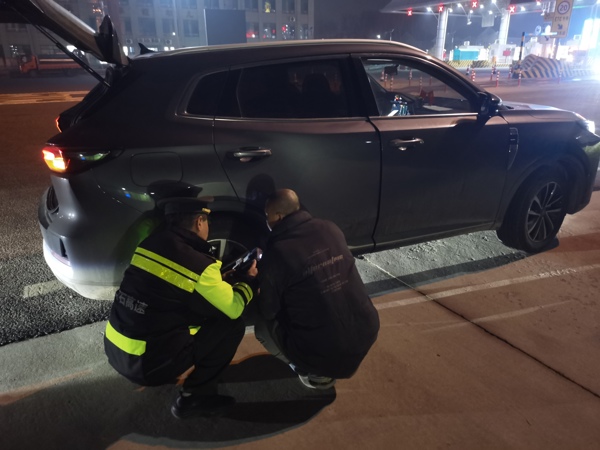 幾分鐘后,車輛輪胎恢復(fù)正常,可安全行駛。司機(jī)看著恢復(fù)正常的車輛,對(duì)工作人員深夜及時(shí)伸出援手連連道謝,當(dāng)場(chǎng)為工作人員主動(dòng)擔(dān)當(dāng)、熱心助人的舉動(dòng)給予好評(píng),稱贊其用貼心服務(wù)解決了自己的燃眉之急,隨后安心駕車返家更換車輛。