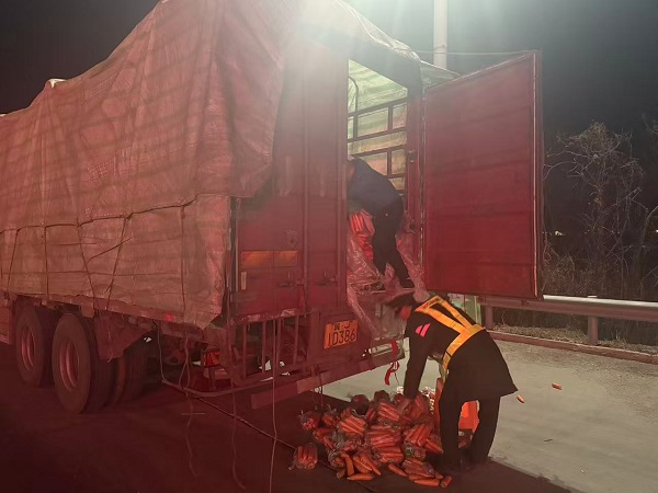 當班班長立即用對講機呼叫支援。不過幾十秒,兩個身著反光背心的身影小跑過來。沒有指揮,沒有多話,他們很自然地蹲下身,和司機一起將滾落的胡蘿卜攏成小堆。寒夜里,只聽見短促的呼吸聲,和胡蘿卜被輕輕放入車中的“哐、哐”輕響。