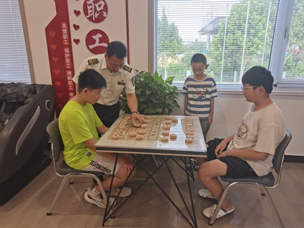 看護(hù)小組充分利用職工小家場(chǎng)地資源,精心規(guī)劃了多樣化的活動(dòng)內(nèi)容。在這里,既有安靜的學(xué)習(xí)角,志愿者們會(huì)耐心輔導(dǎo)孩子們完成暑假作業(yè),幫助他們攻克學(xué)習(xí)上的難題;也有充滿樂趣的互動(dòng)區(qū),孩子們可以跟著老師學(xué)下象棋,在楚河漢界的對(duì)弈中鍛煉思維、培養(yǎng)專注力;歌聲陣陣的才藝區(qū)更是熱鬧,孩子們跟著節(jié)奏學(xué)唱歌,在歡聲笑語(yǔ)中展現(xiàn)童真與活力。