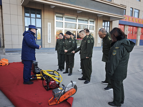 在消防員的帶領(lǐng)下,員工們先后參觀了消防指揮中心、宿舍、消防車、器材裝備、黨團活動室等區(qū)域。從“威武”的水罐消防車、搶險救援車到各類破拆工具、防毒面具、隔熱服等專業(yè)裝備,消防員逐一講解其功能用途、操作方法及維護保養(yǎng)要點,并重點演示了空氣呼吸器佩戴、滅火器規(guī)范使用、消火栓、消防水帶等基本器材的操作要求和使用方法。大家聽得認(rèn)真、看得仔細(xì),不時提問交流,現(xiàn)場學(xué)習(xí)氛圍濃厚。