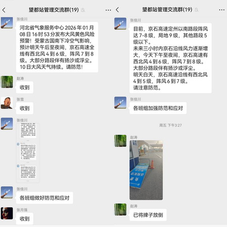 嚴(yán)格執(zhí)行24小時(shí)雙人雙崗值班制度,確保值班人員通訊暢通。通過“冀望暢行”抖音直播平臺(tái)開展防風(fēng)宣傳,及時(shí)向公眾發(fā)布安全提示。值班人員密切關(guān)注天氣變化及站口動(dòng)態(tài),嚴(yán)格落實(shí)重大事件上報(bào)制度。如遇突發(fā)情況,迅速啟動(dòng)應(yīng)急預(yù)案,及時(shí)妥善處置并上報(bào),確保在第一時(shí)間內(nèi)控制局面,將惡劣天氣影響降至最低。